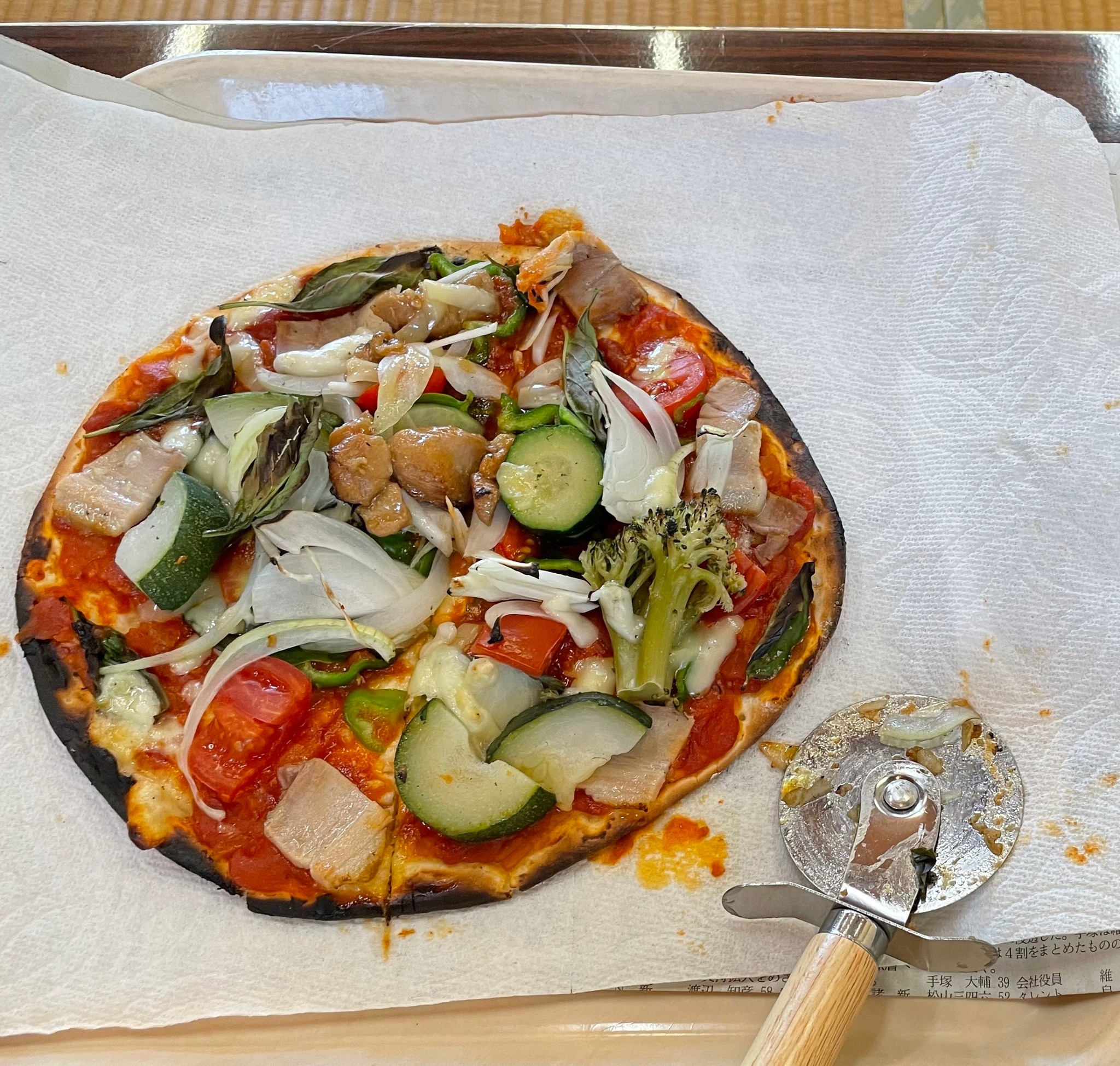 ですが、今回は自分たちが収穫した野菜も使って【夏野菜ピザ】を自作しました✨