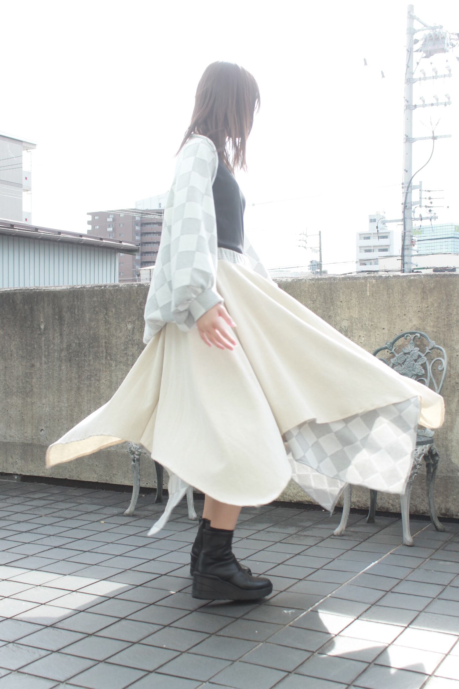 動きに合わせて揺れるシルエットが女性らしさを演出します。